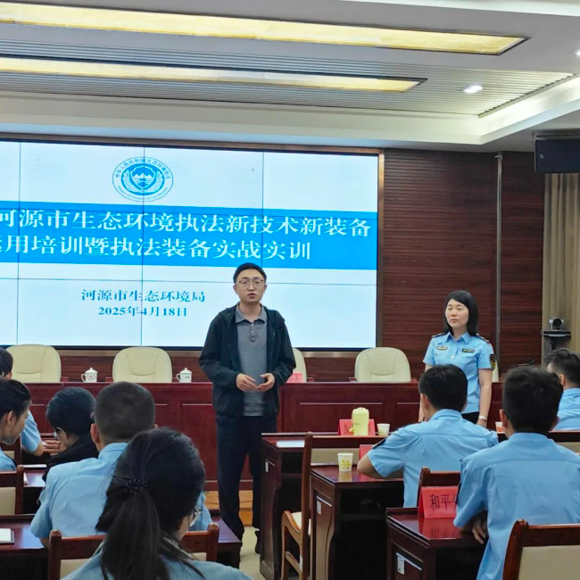 为全面提升全市生态环境非现场监管执法水平和执法装备使用效能,深入推进2025年生态环境保护执法大练兵活动,近日,河源市生态环境局举办2025年河源市生态环境执法新技术新装备运用培训班暨执法装备实战实训。来自市生态环境局执法监督科、各分局及江东新区、市高新区的近30名执法人员参加了此次培训和实战实训,通过“理论+演示+实操”的模式,开启了一场科技赋能的执法能力提升行动。
