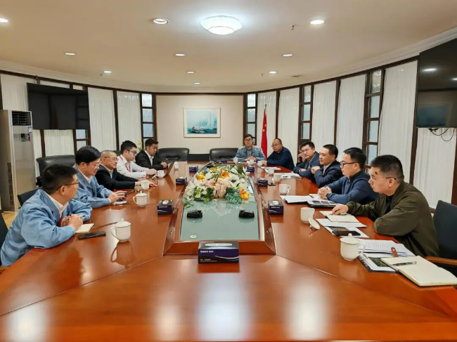 中山市生态环境局召开专项座谈会,党组书记、局长杜敏,党组成员、副局长杨成与黄圃镇某企业负责人会议交流