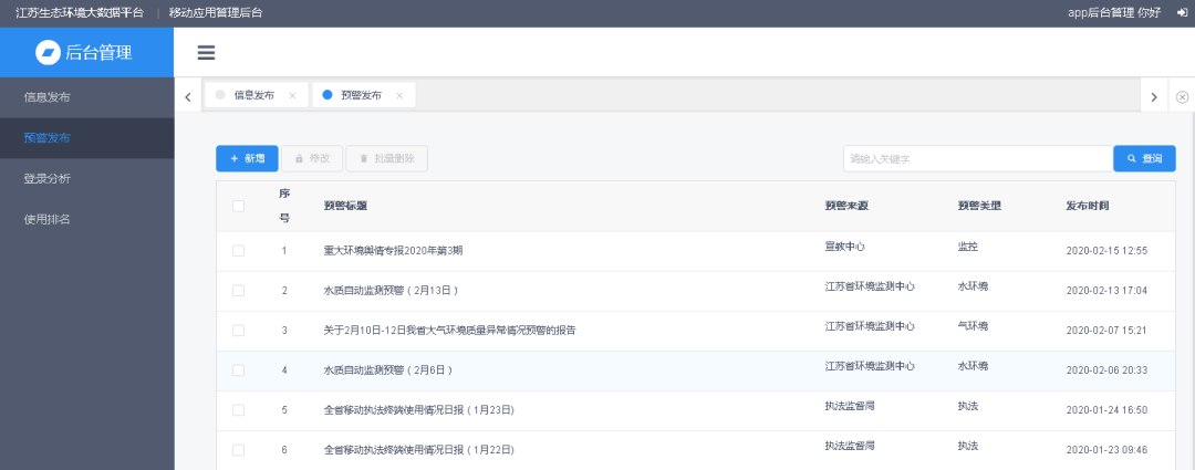 在大数据APP及时发布各类预警信息