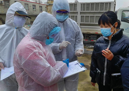 下沉社区的党员不畏凶险在居民区开展对封闭隔离区域人员的调查登记核实管控工作