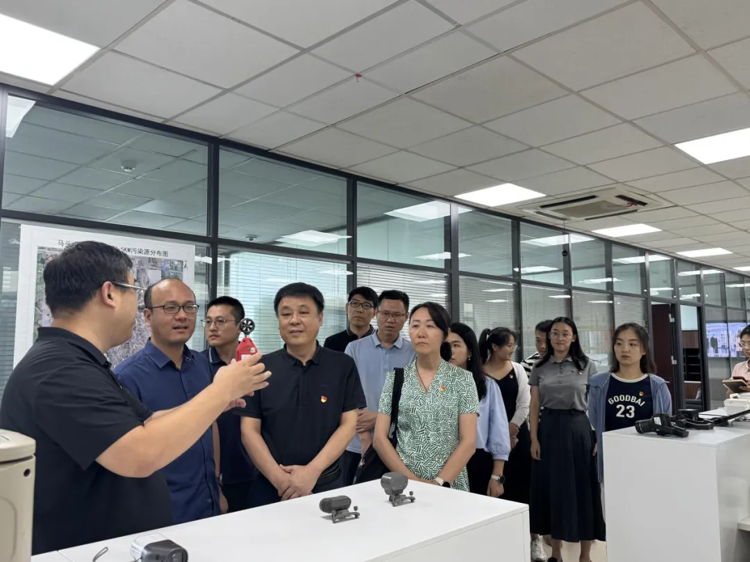 活动过程中,中心党员干部参观了济南东和信息技术有限公司,公司工作人员详细展示了无人机与生态环境监测设备硬件构造与软件系统,揭秘了融合地理信息数据和生态环境数据的重点区域正射影像制作和实景三维建模过程。