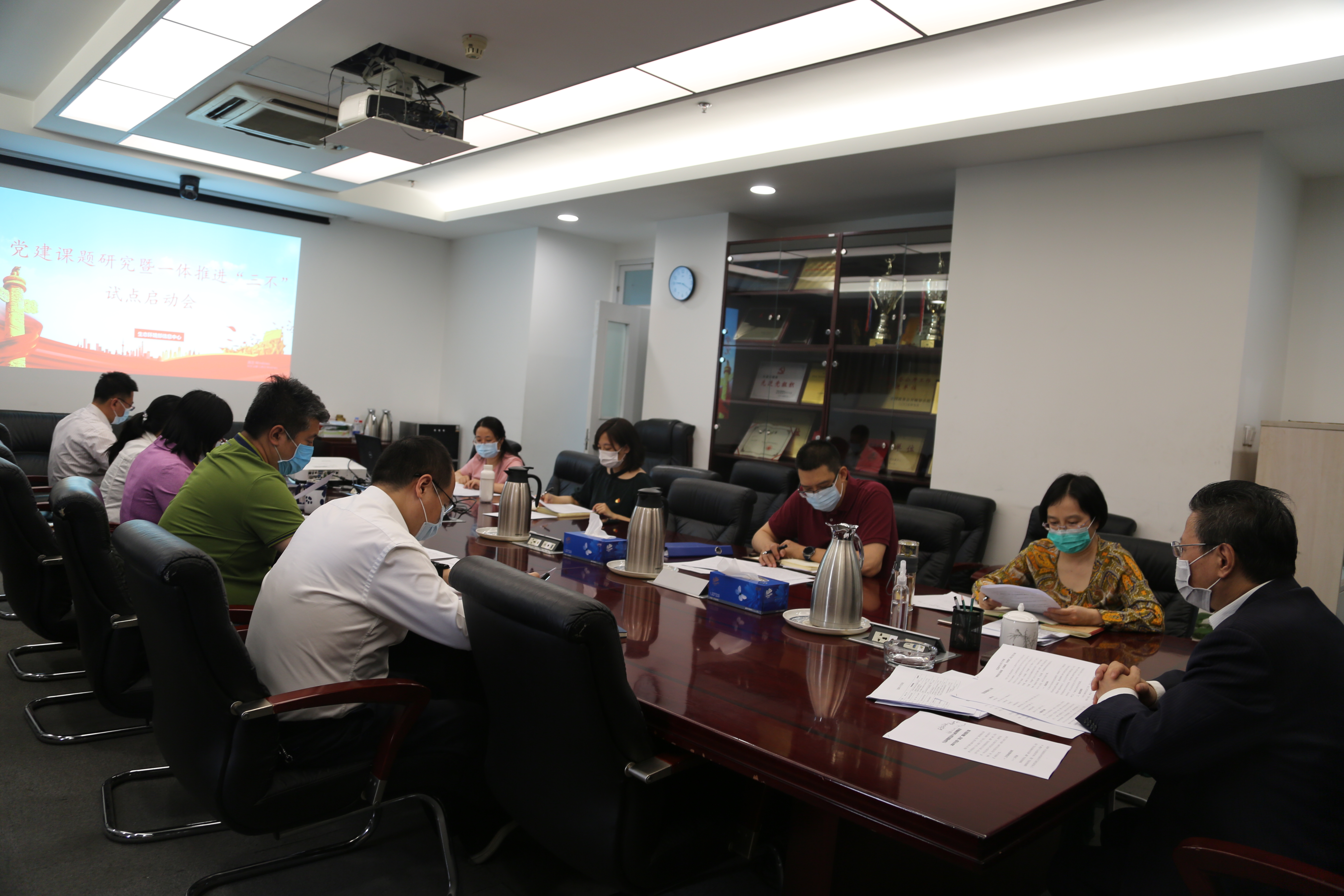 2020年5月21日,信息中心召开党建课题研究暨一体推进“不敢腐、不能腐、不想腐”试点启动会,集体讨论《党建课题研究大纲》和《信息中心关于开展一体推进“不敢腐、不能腐、不想腐”试点实施方案》。中心党委书记、主任章少民出席会议并讲话,各支部书记及办公室(党办)相关人员参加会议。会议由党委副书记兼纪委书记张嘉陵主持。