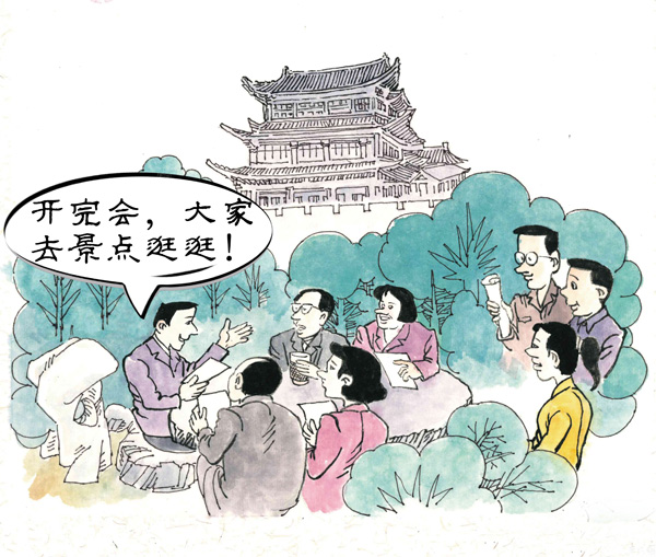 漫说党纪——看景还是开会?