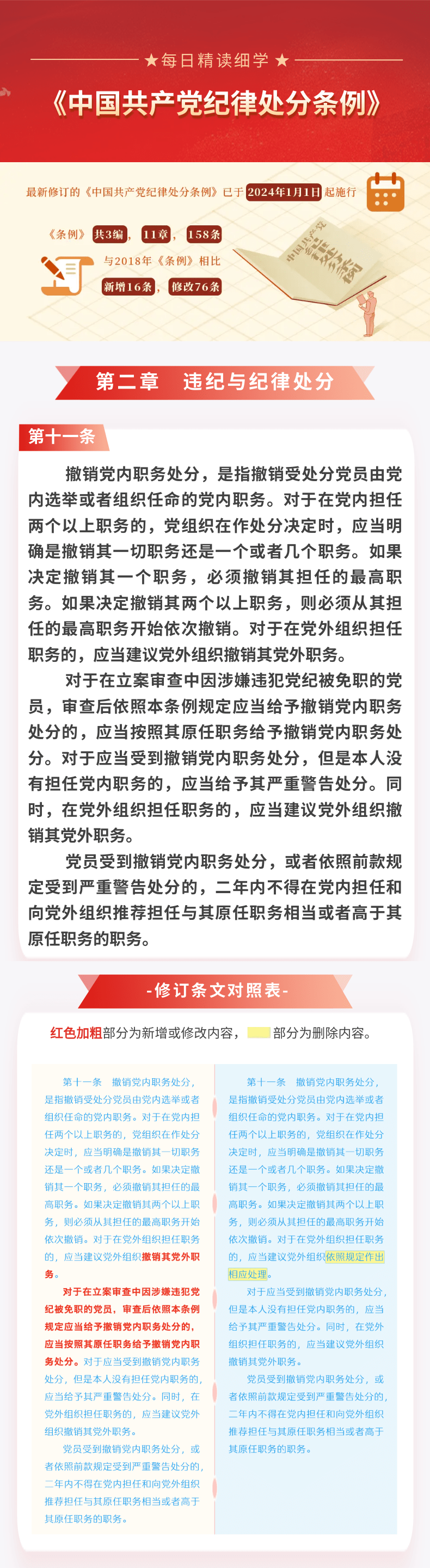 每日精读细学⑩丨《中国共产党纪律处分条例》第二章第十一条