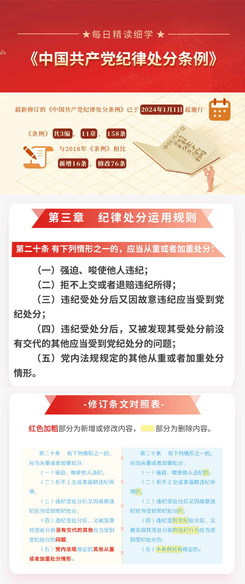 每日精读细学⑯丨《中国共产党纪律处分条例》第三章第二十条