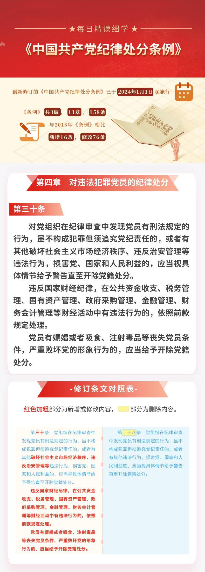 每日精读细学㉓丨《中国共产党纪律处分条例》第四章第三十条