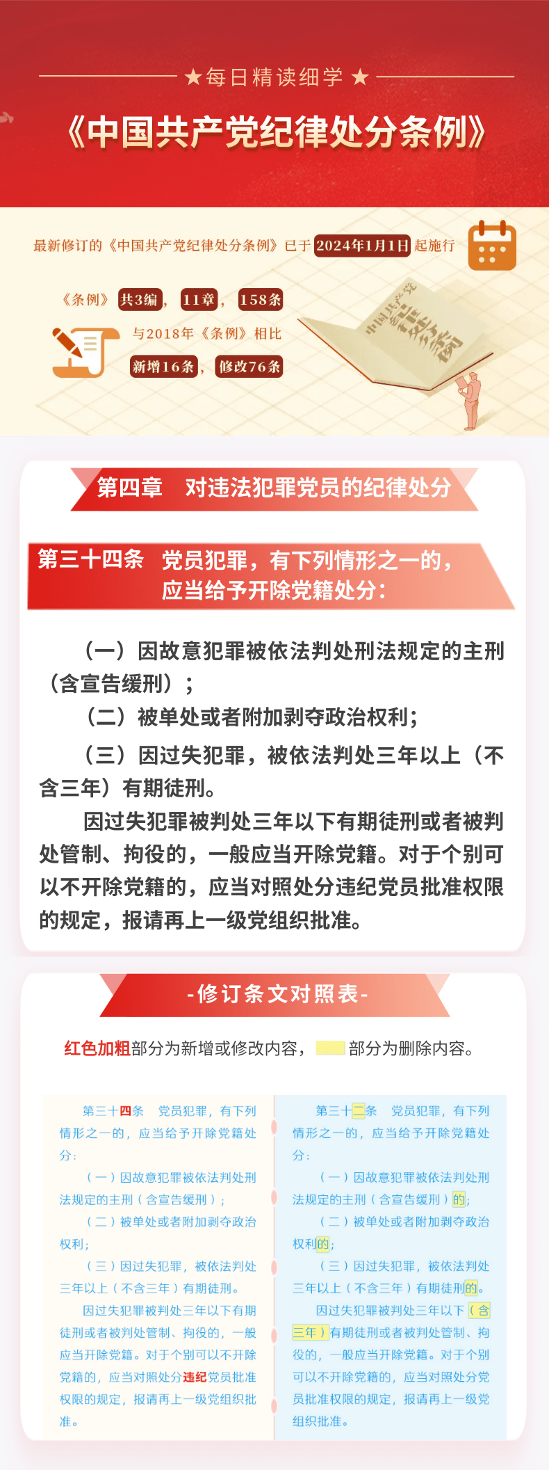 每日精读细学㉖丨《中国共产党纪律处分条例》第四章第三十四条
