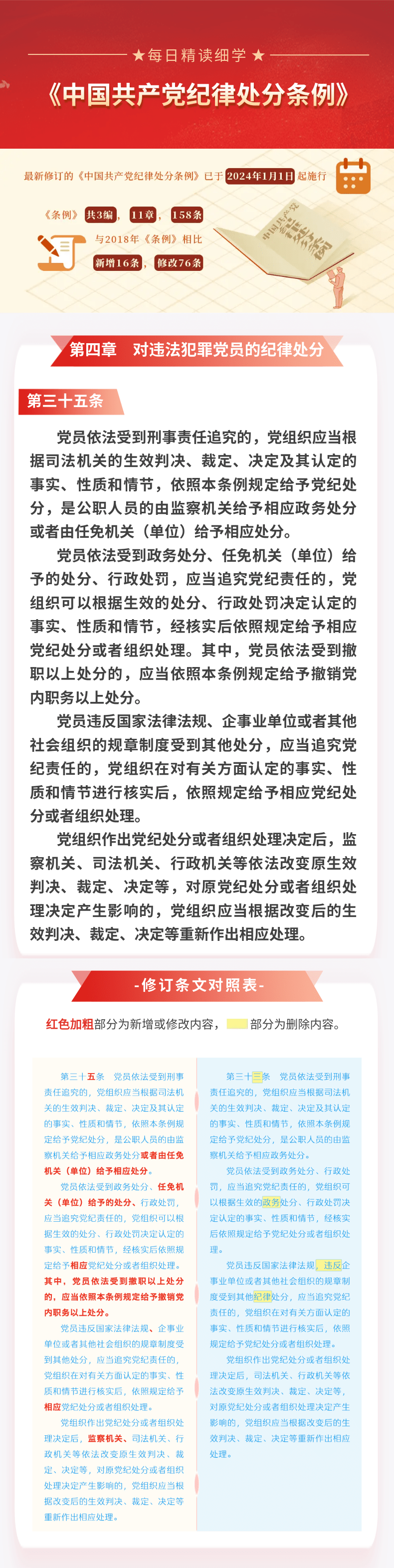 每日精读细学㉗丨《中国共产党纪律处分条例》第四章第三十五条