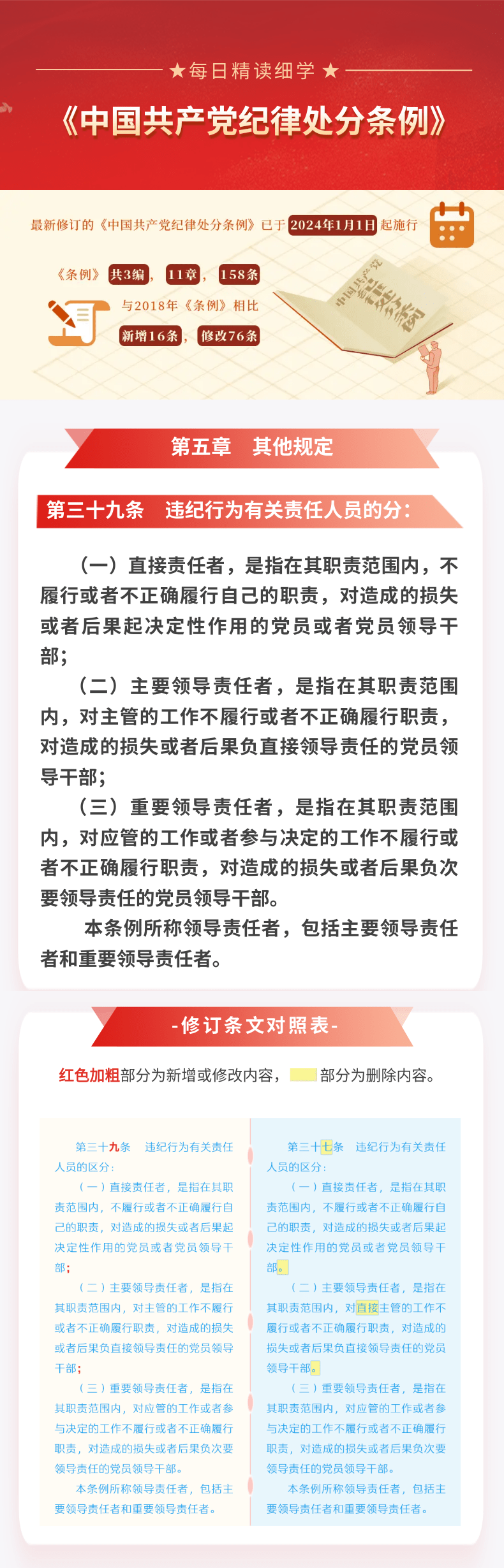每日精读细学㉙丨《中国共产党纪律处分条例》第五章第三十九条