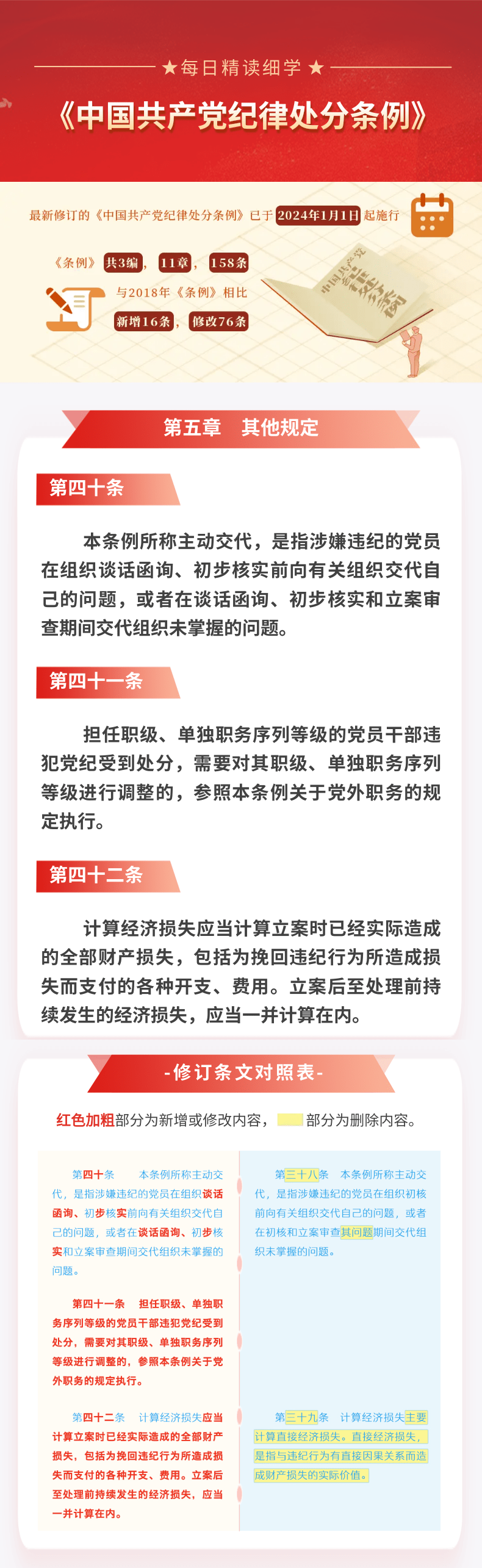 每日精读细学㉚丨《中国共产党纪律处分条例》第五章第四十条第四十一条第四十二条