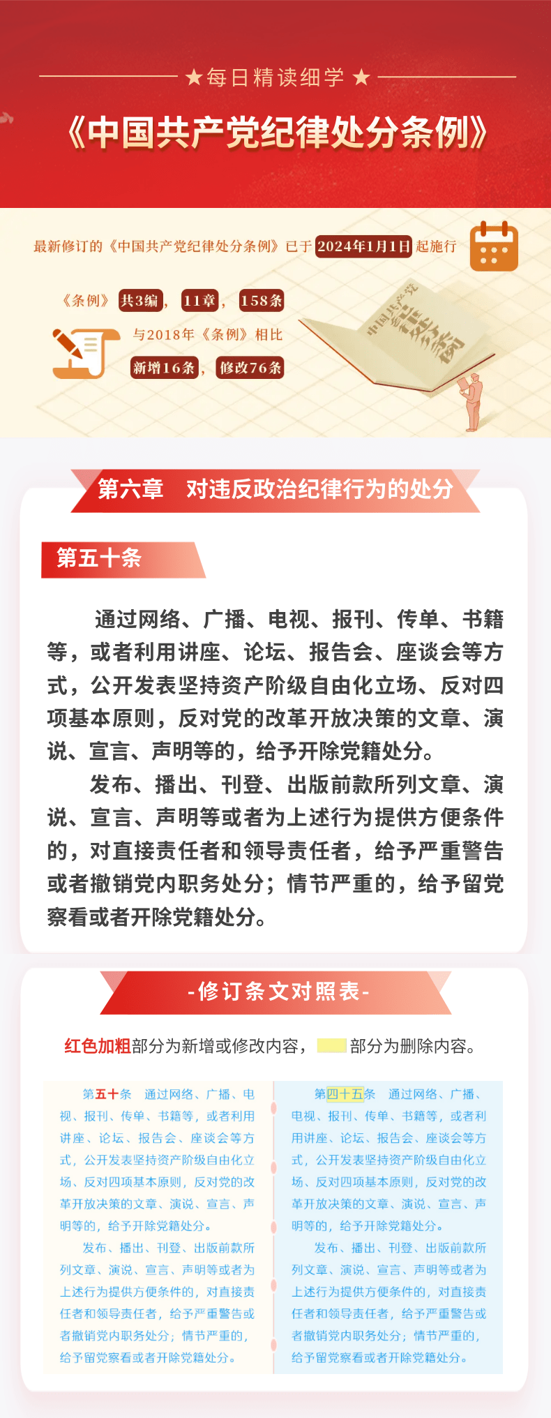每日精读细学㊱丨《中国共产党纪律处分条例》第六章第五十条