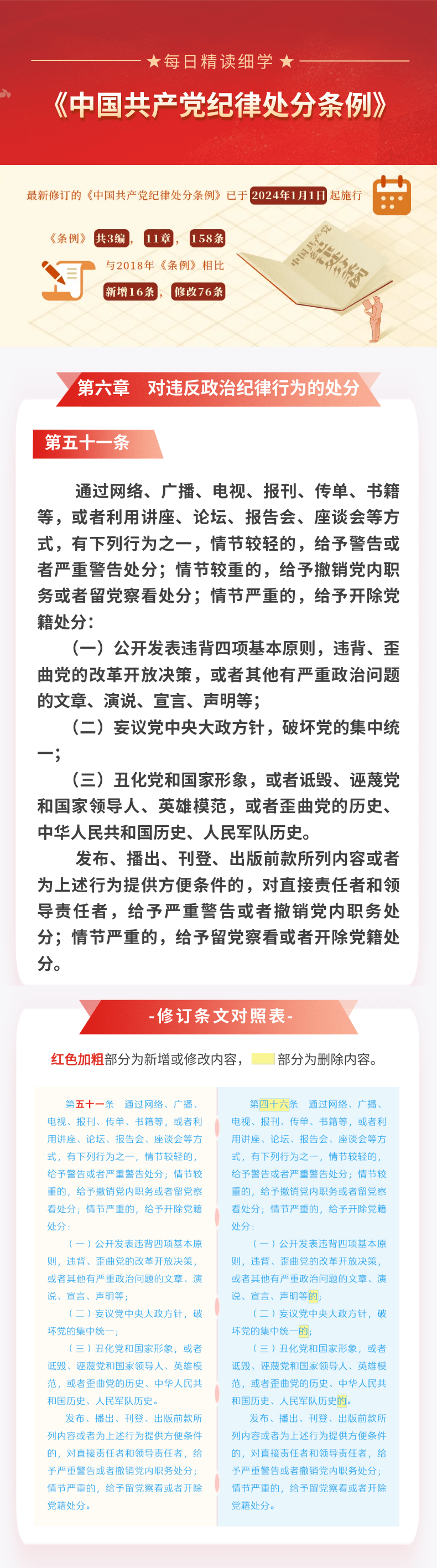 每日精读细学㊲丨《中国共产党纪律处分条例》第六章第五十一条