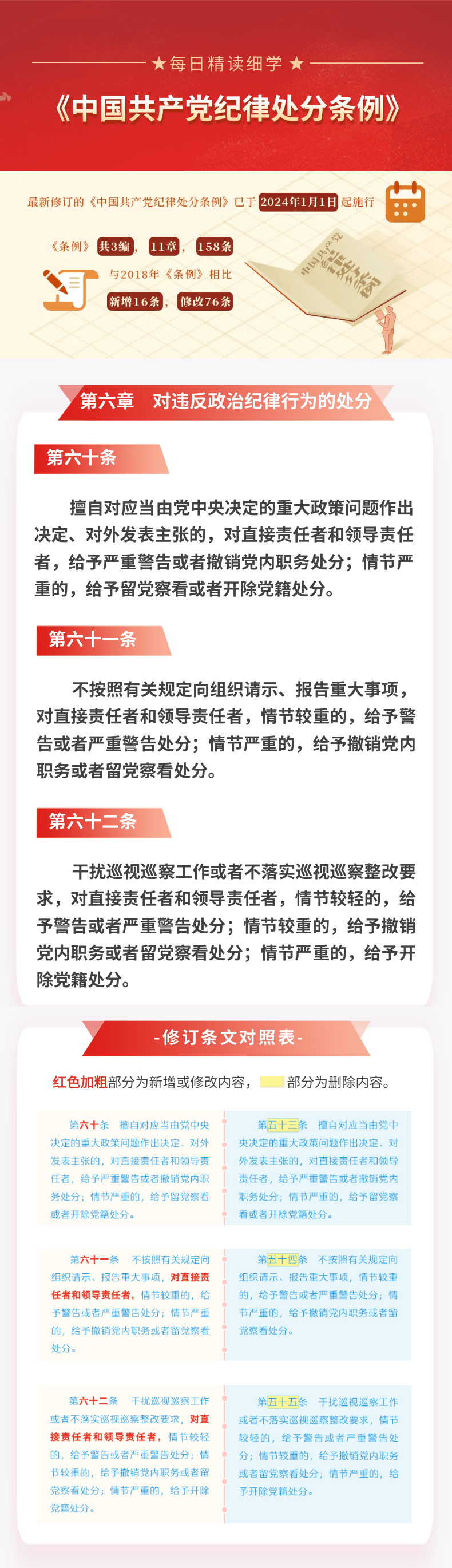 每日精读细学㊷丨《中国共产党纪律处分条例》第六章第六十条第六十一条第六十二条