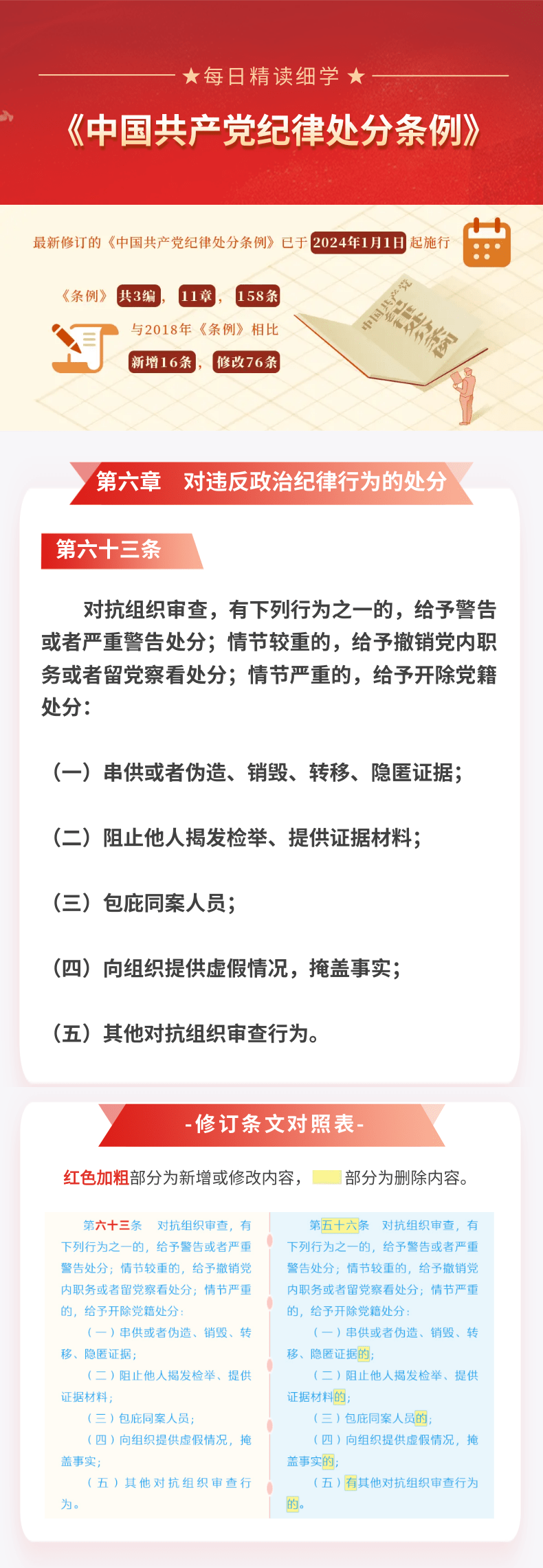 每日精读细学㊸丨《中国共产党纪律处分条例》第六章第六十三条