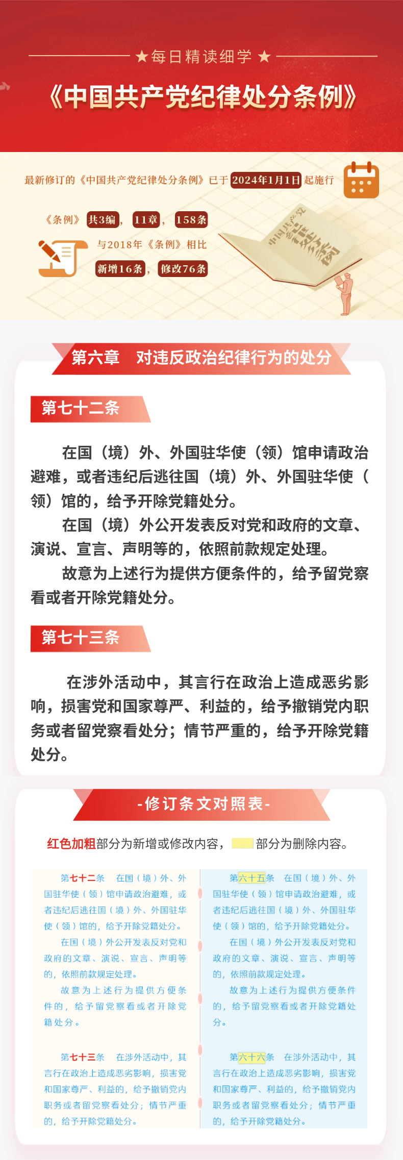 每日精读细学㊿丨《中国共产党纪律处分条例》第六章第七十二条第七十三条