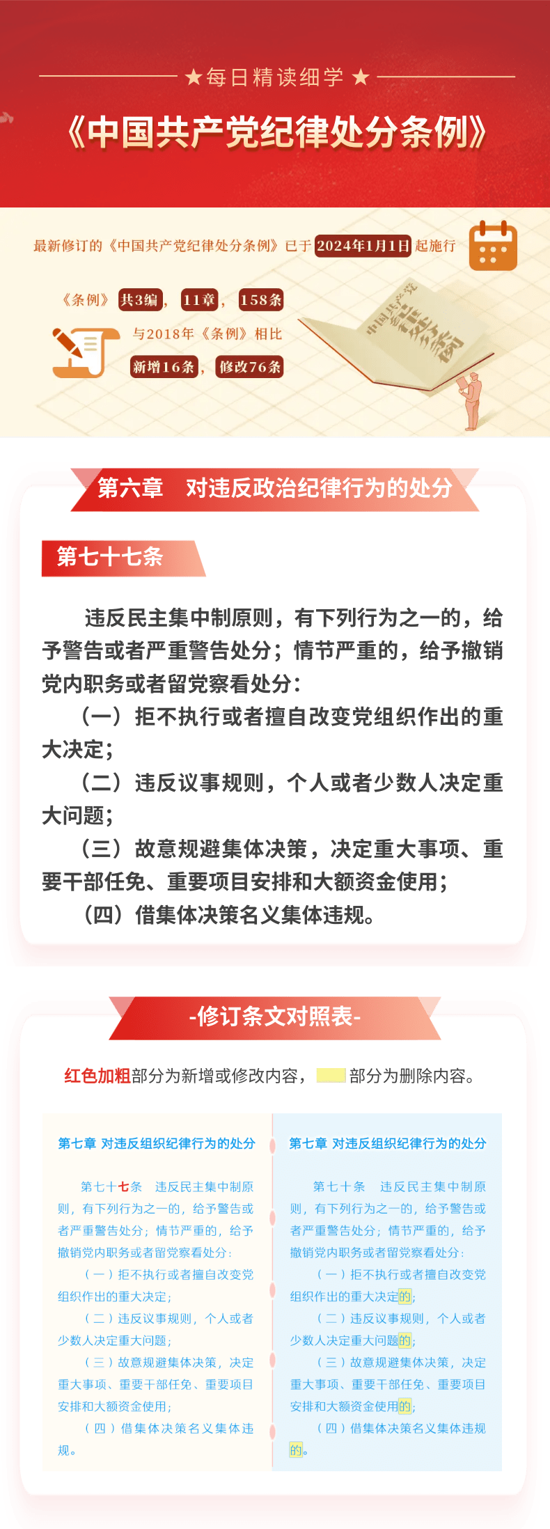 每日精读细学(52)丨《中国共产党纪律处分条例》第六章第七十七条