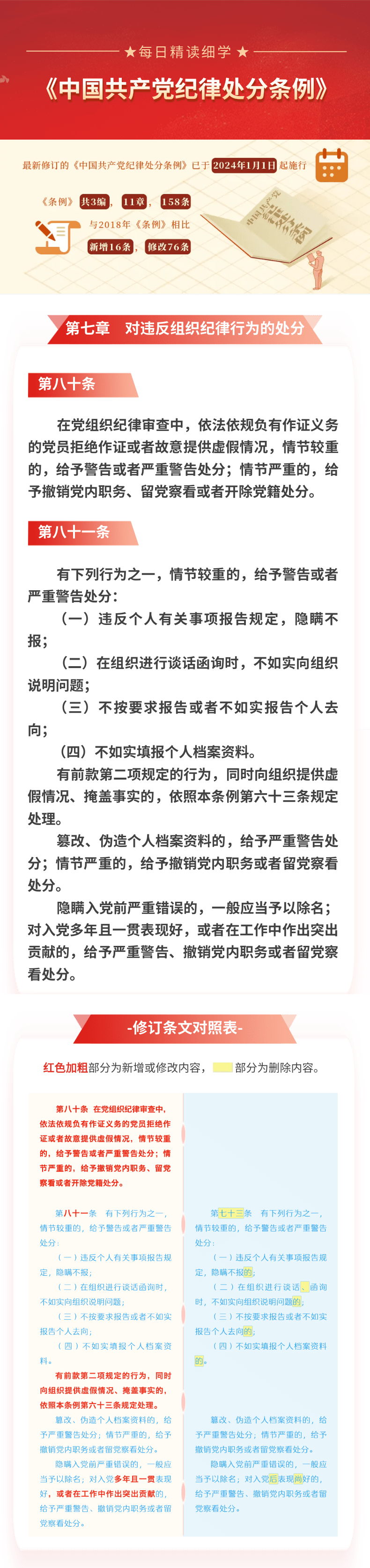 每日精读细学(54)丨《中国共产党纪律处分条例》第七章第八十条第八十一条