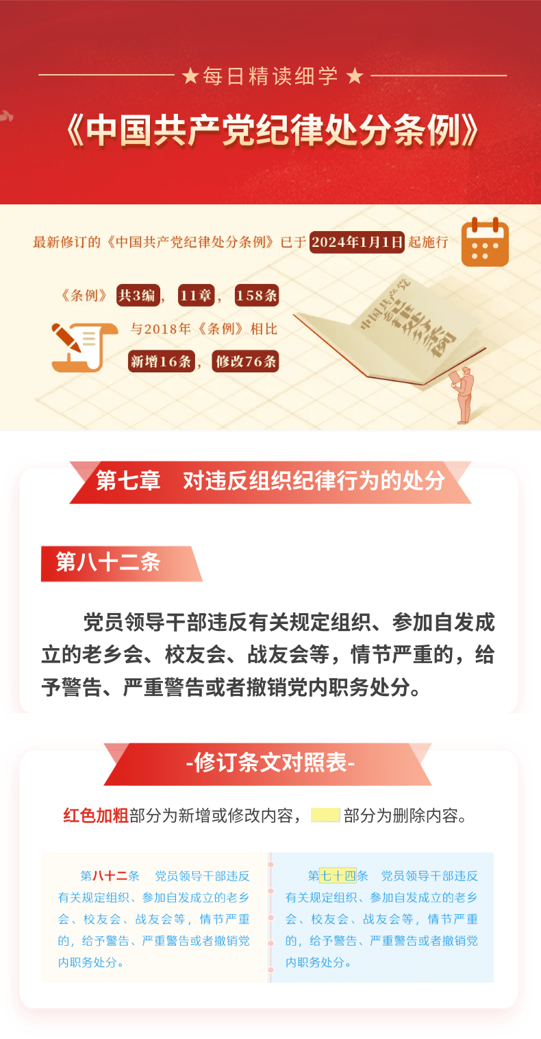 每日精读细学(55)丨《中国共产党纪律处分条例》第七章第八十二条