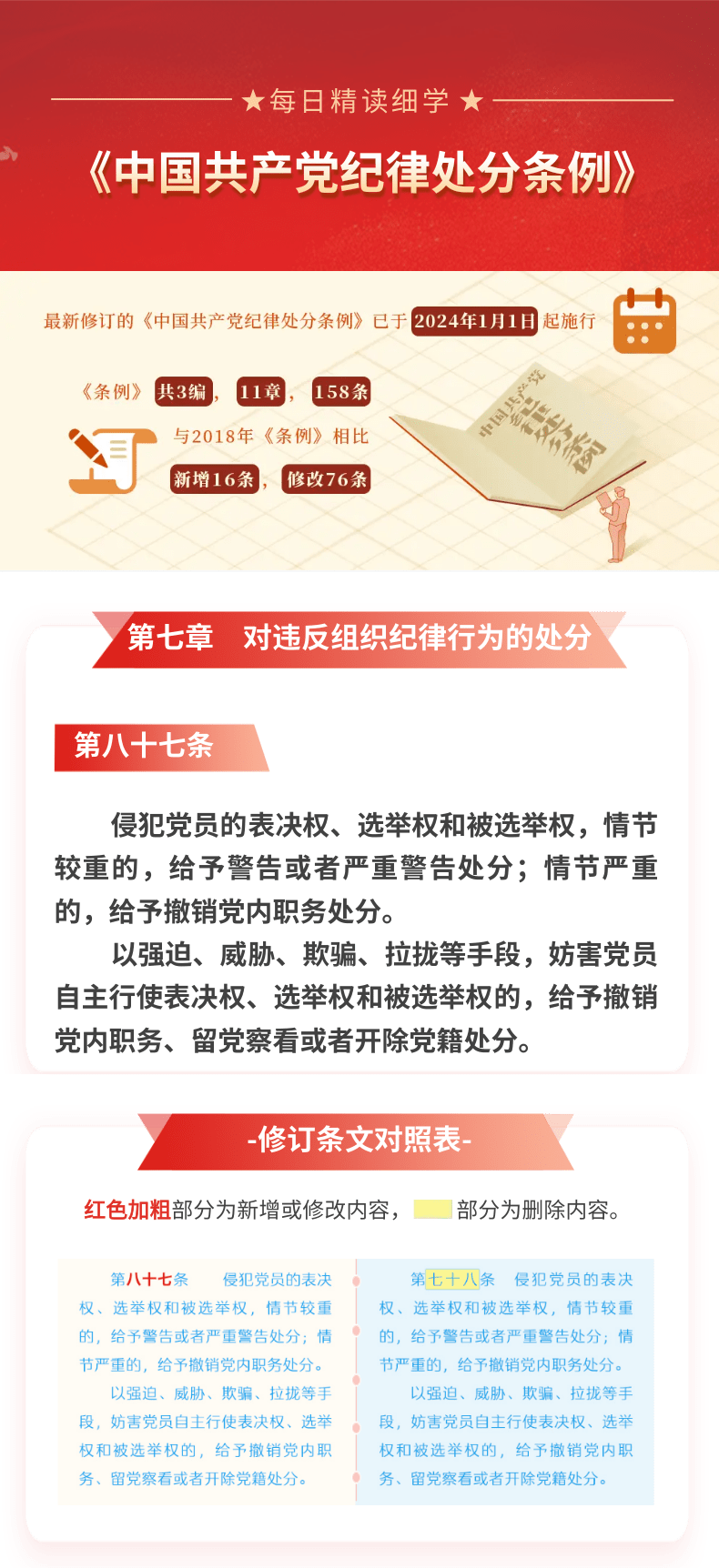 每日精读细学(60)丨《中国共产党纪律处分条例》第七章第八十七条