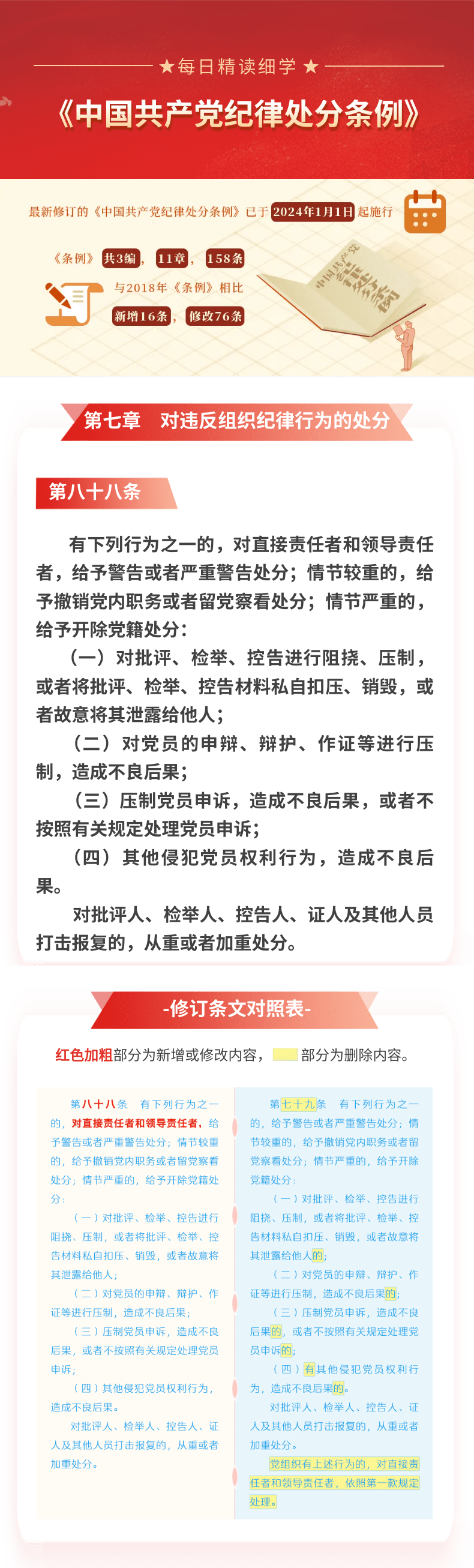 每日精读细学(61)丨《中国共产党纪律处分条例》第七章第八十八条