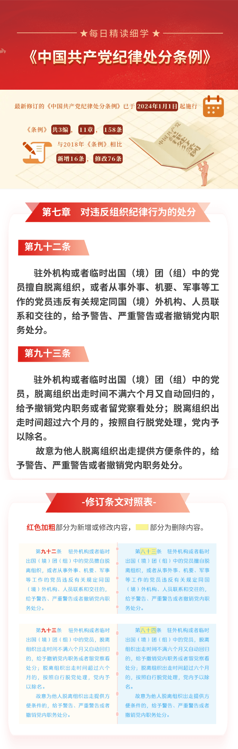 每日精读细学(64)丨《中国共产党纪律处分条例》第七章第九十二条第九十三条