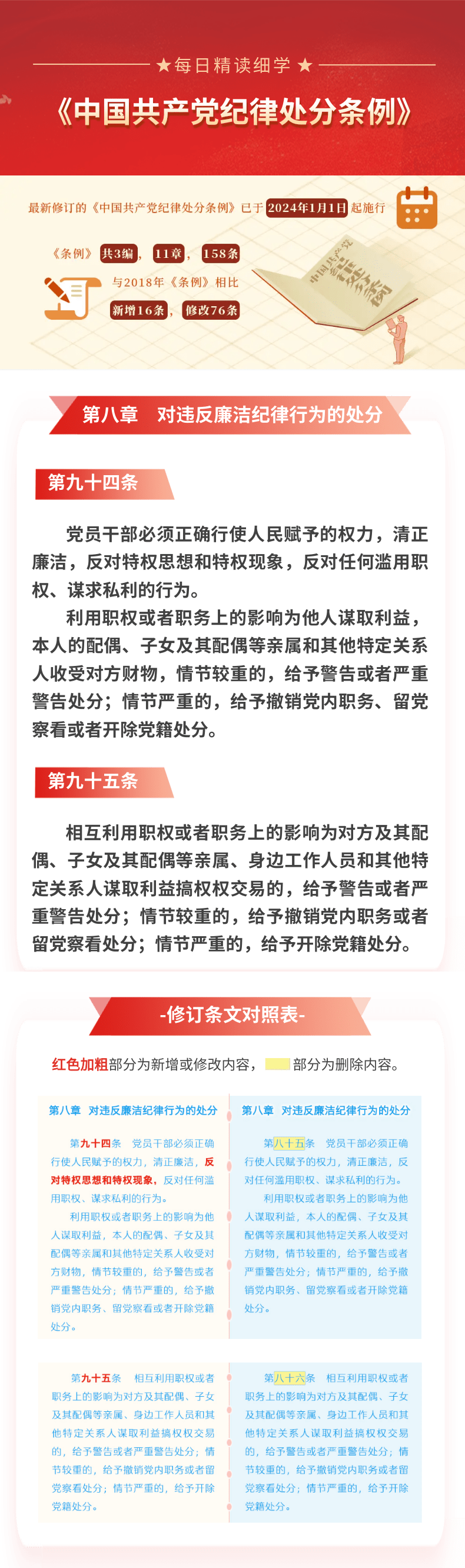 每日精读细学(65)丨《中国共产党纪律处分条例》第八章第九十四条第九十五条