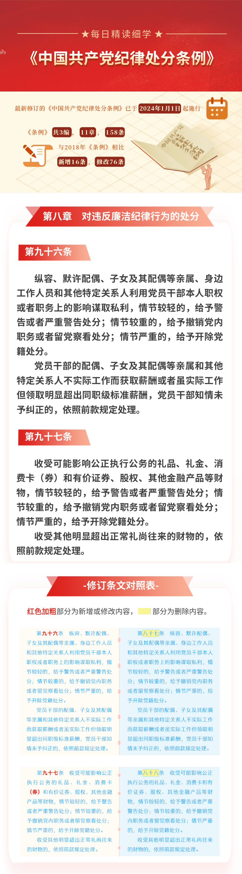 每日精读细学(66)丨《中国共产党纪律处分条例》第八章第九十六条第九十七条