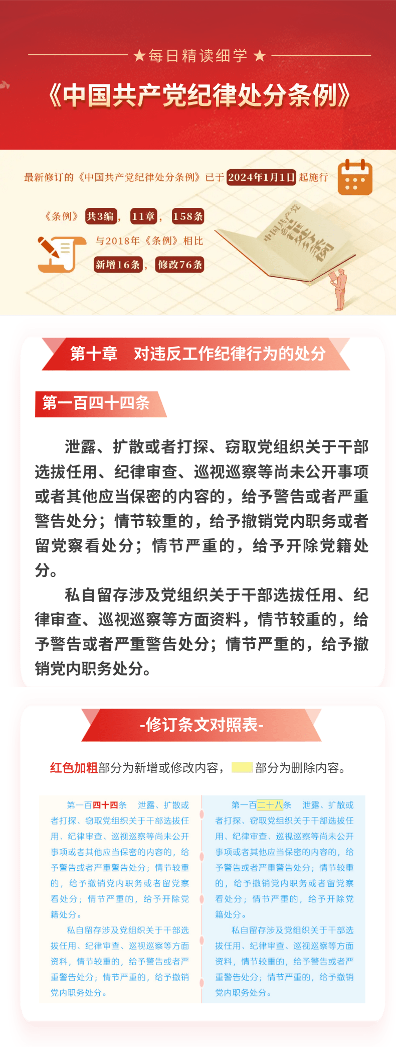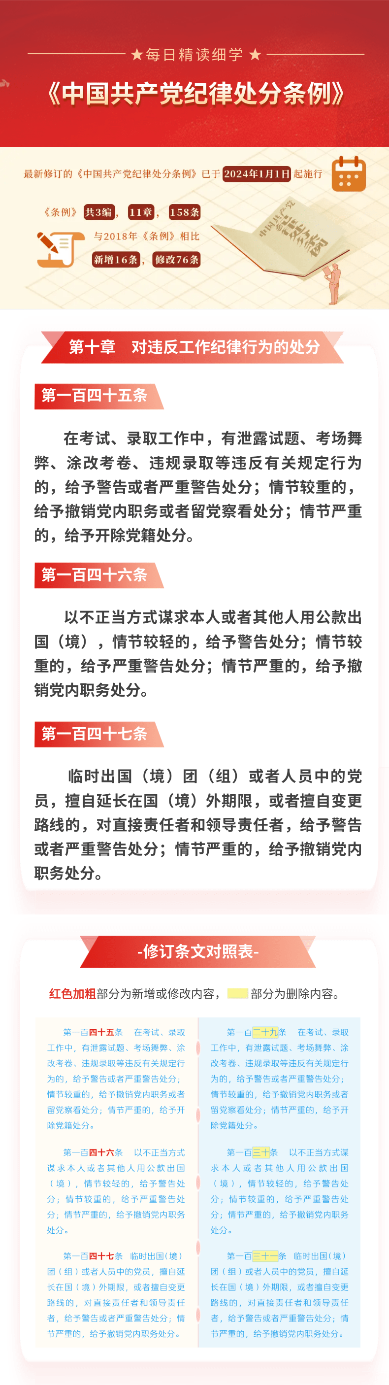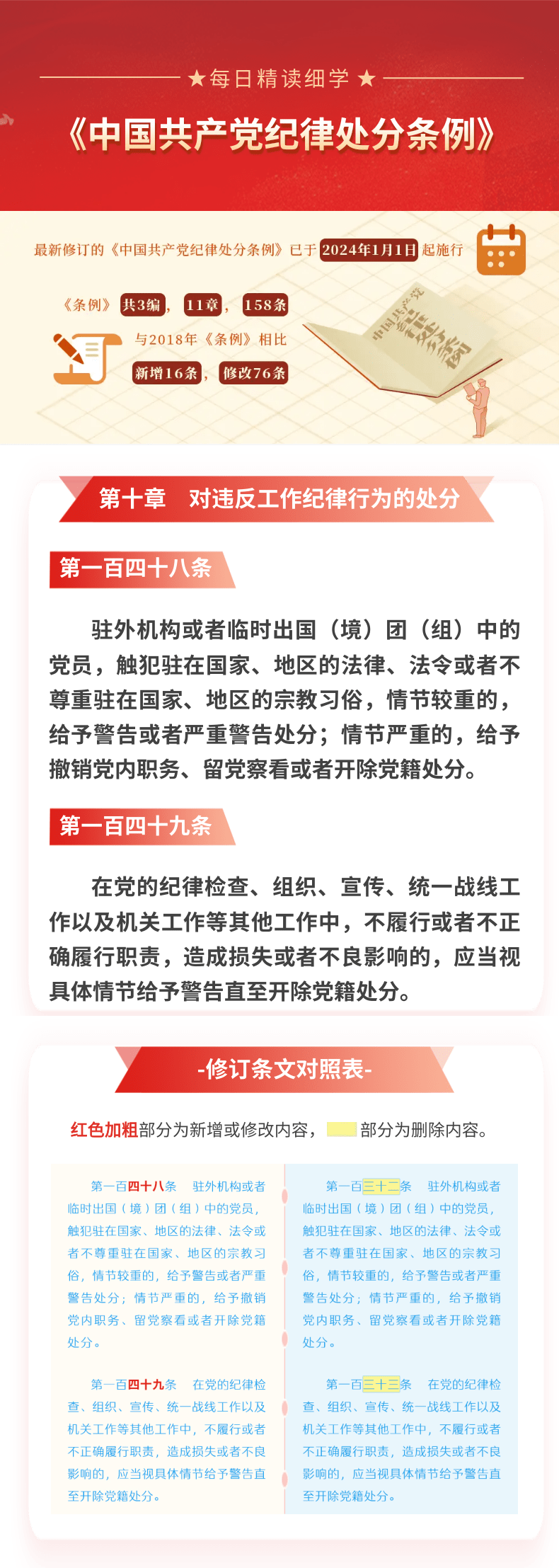 每日精读细学(96-100)丨《中国共产党纪律处分条例》第十章第一百四十二条至第十一章第一百五十一条