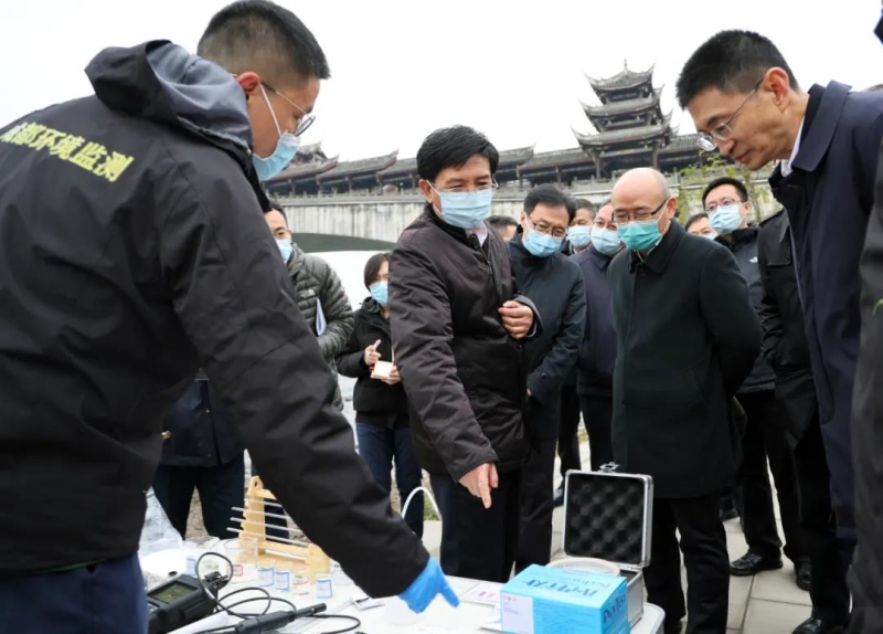 流经成都市区的锦江,是成都人民的母亲河,其上游两大支流府河、南河穿城而过,最终汇入长江一级支流——岷江。作为锦江流出成都的出境地,黄龙溪国控断面水质情况就是成都水环境质量的一张晴雨表。近年来,通过实施截污减排、活水补给等工程,锦江水生态环境得到明显改善,黄龙溪断面水质也由2016年的劣V类提升至Ⅲ类。孙金龙在黄龙溪廊桥岸边,听取锦江水环境治理工作情况汇报,仔细询问监测方法和频次,察看现场取水快检结果,对锦江水环境治理成效予以肯定。他强调,要继续加强锦江水生态环境保护,全面推进水污染治理、水生态修复和水资源保护,坚持生态优先、源头管控、综合施策,确保一江清水向东流。