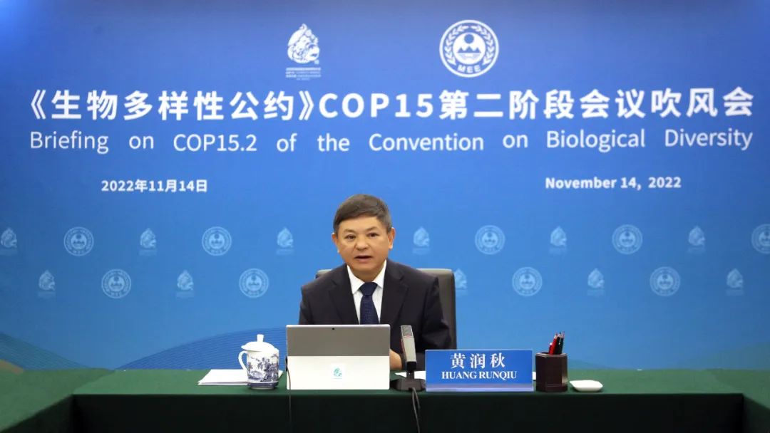 11月14日,《生物多样性公约》第十五次缔约方大会(COP15)第二阶段会议吹风会以视频方式举行。COP15主席、生态环境部部长黄润秋出席会议并致辞。