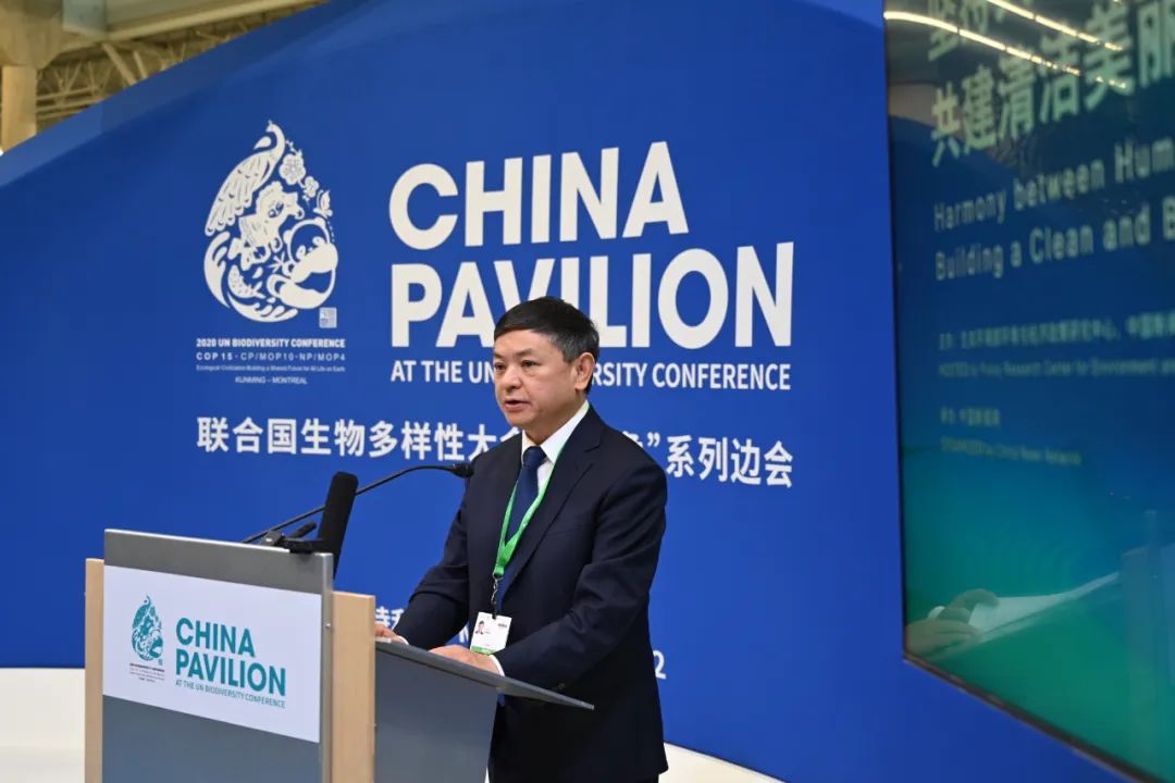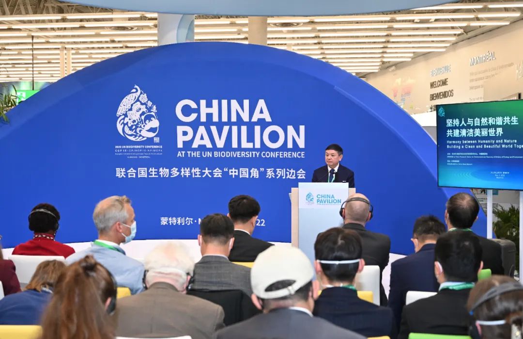 当地时间12月7日,《生物多样性公约》第十五次缔约方大会(COP15)第二阶段会议开幕日,中方在中国角举行“坚持人与自然和谐共生 共建清洁美丽世界”主题边会。COP15主席、生态环境部部长黄润秋出席边会并作主旨发言。