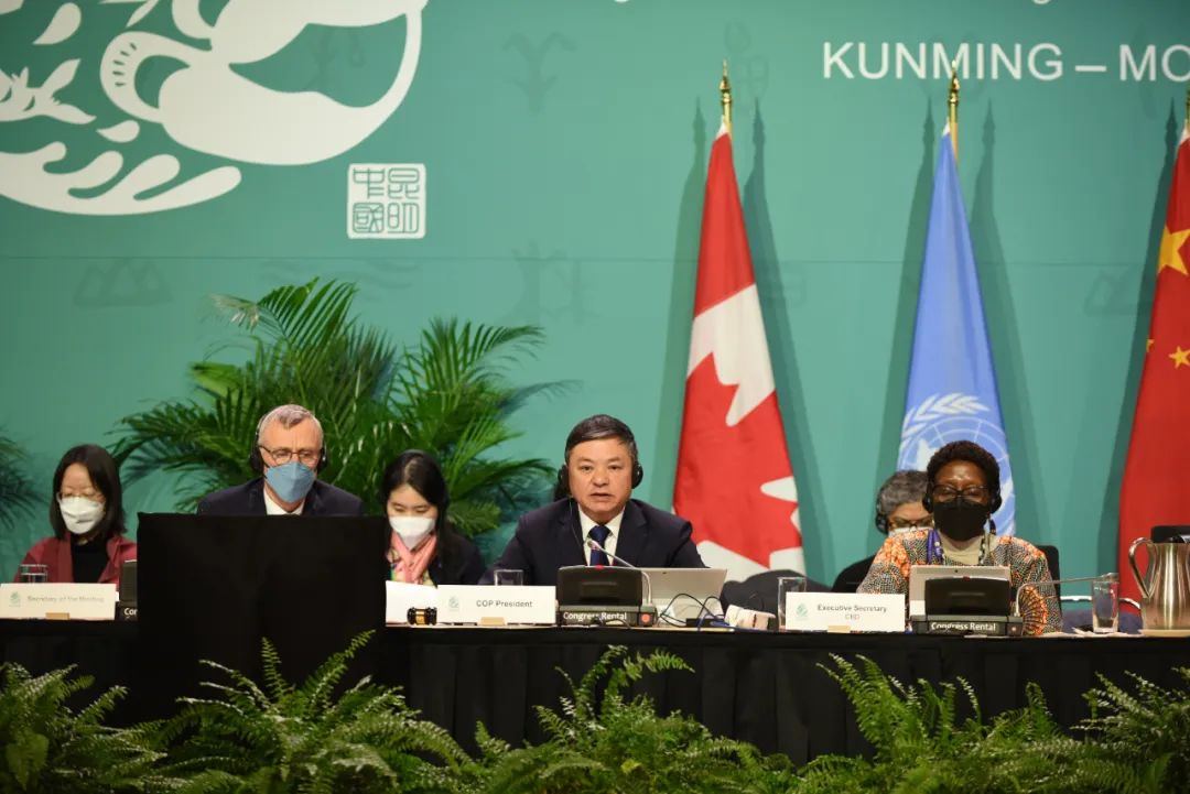 当地时间12月10日,联合国《生物多样性公约》第十五次缔约方大会(COP15)主席、 生态环境部部长黄润秋在加拿大蒙特利尔主持召开COP15、《卡塔赫纳生物安全议定书》第十次缔约方大会、《名古屋议定书》第四次缔约方大会全体会议。会议听取各工作组的磋商进展汇报,对谈判进程进行第一次盘点,审议通过23项决定,约占会议全部决定的1/3。来自193个国家,以及国际机构、非政府组织、利益攸关方的代表,约6000人参加会议。