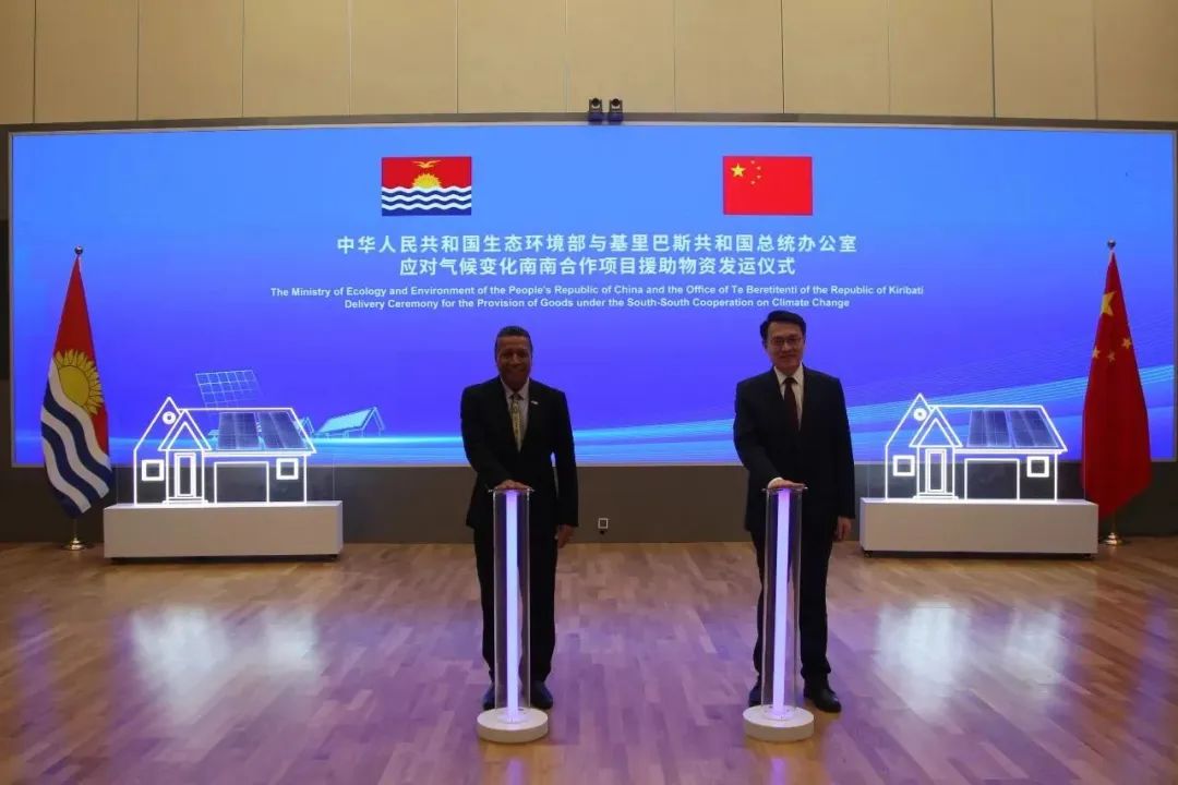 2023年4月11日,中国应对气候变化南南合作援基里巴斯太阳能户用光伏发电系统、援博茨瓦纳气象机动站、援哥斯达黎加电动公交车发运仪式在京顺利举办。生态环境部副部长赵英民出席仪式并致辞。基里巴斯驻华大使戴维·蒂阿博、博茨瓦纳驻华大使巴特朗·塞雷马、哥斯达黎加驻华临时代办乔纳森·古兹曼分别出席仪式并致辞。