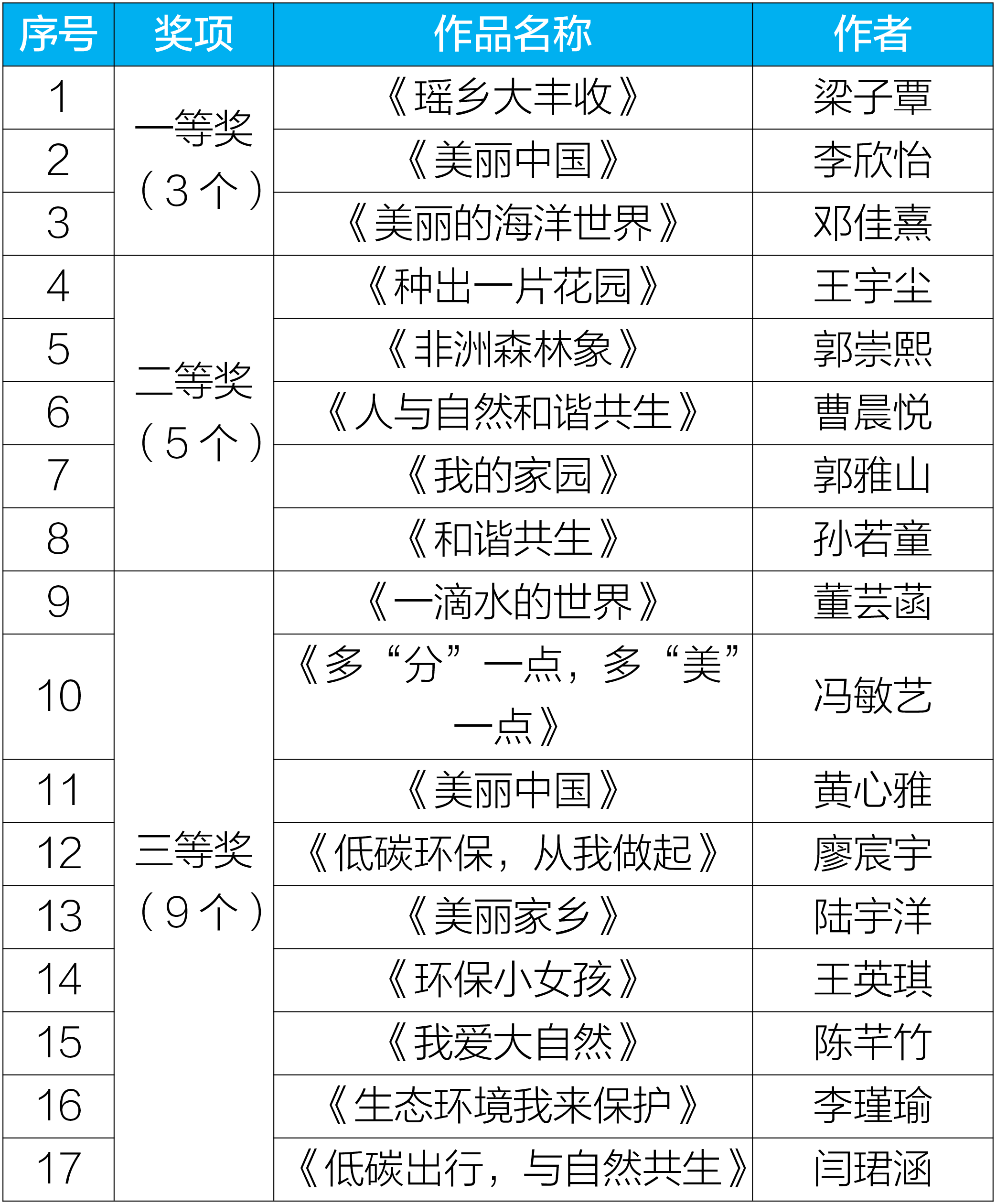 关于2023年六五环境日主题少儿绘画征集大赛获奖名单的公示