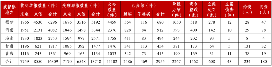 经党中央、国务院批准,第三轮第一批5个中央生态环境保护督察组于2023年11月21日至22日陆续进驻福建、河南、海南、甘肃、青海五个省开展督察。截至12月18日,各督察组已完成下沉工作任务。