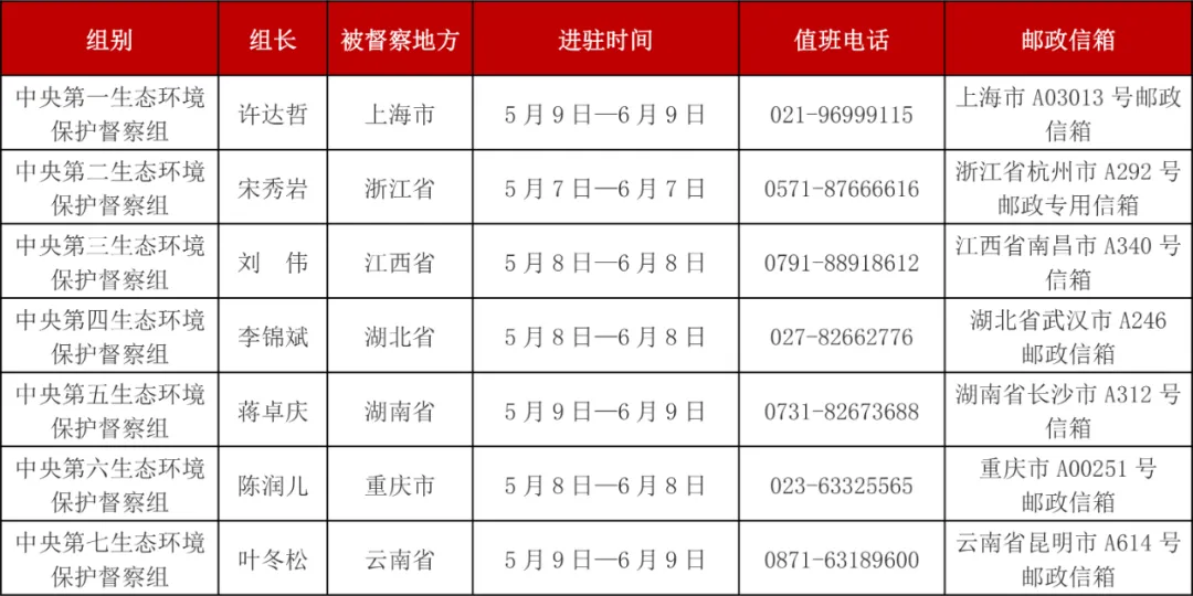 根据工作安排,第三轮第二批中央生态环境保护督察进驻时间为1个月。进驻期间,各督察组分别设立专门值班电话和邮政信箱,受理被督察地方生态环境保护方面的来信来电信访举报,受理举报电话时间为每天8:00—20:00。督察组全体成员将严格执行纪律要求,接受被督察地方和社会监督。在后续工作中,将严格落实中央有关要求,进一步为基层减负,简化程序、优化流程,不断提高督察工作的精准性、针对性,确保有序有效完成督察任务。