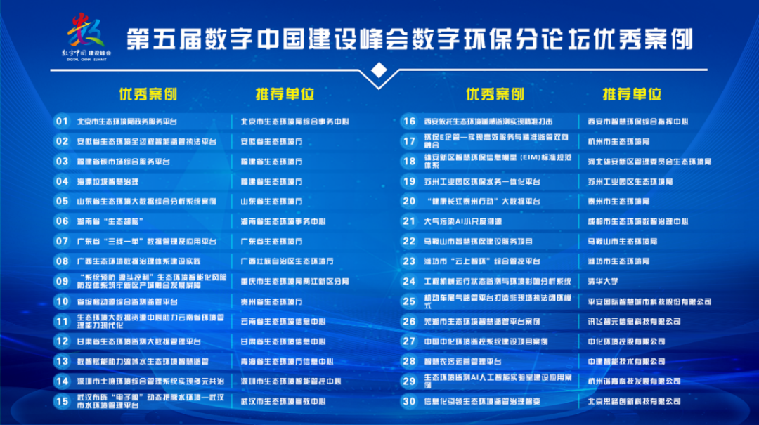 第五届数字中国建设峰会数字环保分论坛优秀应用案例名单发布