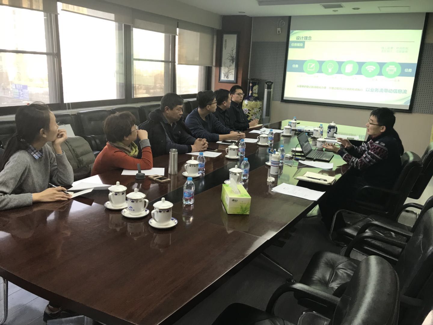 综合室主任李顺主持会议并对中心办公平台的设计理念、主要功能、运行成效及管理机制进行了详细介绍。应用室副主任尚屹针对生态环境大数据建设项目的立项管理、采购管理、实施管理、验收管理、资金管理、运行管理及监督检查进行了逐一介绍。