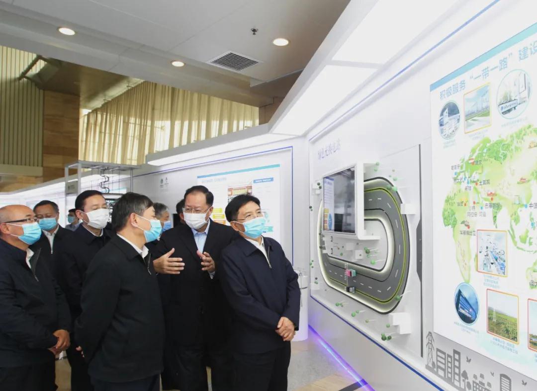 孙金龙、黄润秋一行首先参观调研了国家电网改革发展成就,仔细了解国家电网运营及大数据助力污染防治攻坚战有关情况。