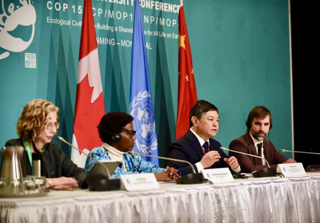 当地时间12月13日,《生物多样性公约》第十五次缔约方大会(COP15)第二阶段会议在加拿大蒙特利尔举行第二场新闻发布会。COP15主席、生态环境部部长黄润秋,加拿大环境与气候变化部长吉尔博,联合国副秘书长兼联合国环境规划署执行主任安德森,联合国《生物多样性公约》(以下简称《公约》)秘书处执行秘书穆雷玛出席发布会,并共同回答了记者提问。