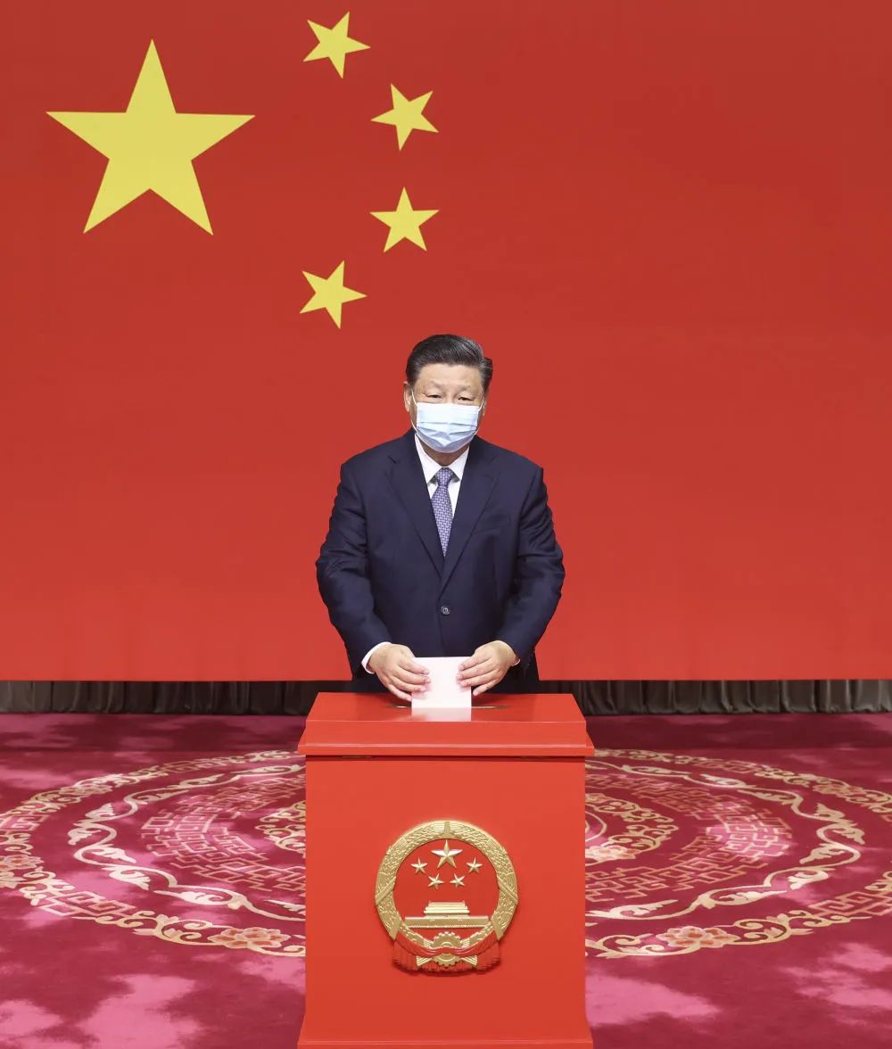 2021年11月,习近平参加北京市区人大代表换届选举投票,用自己的选民证拿到选票,写票后,投入票箱。中国最近一次县乡两级人大换届选举在去年6月底全面完成。这次县乡人大换届选举涉及10.64亿选民,是世界上规模最大的基层民主选举之一。