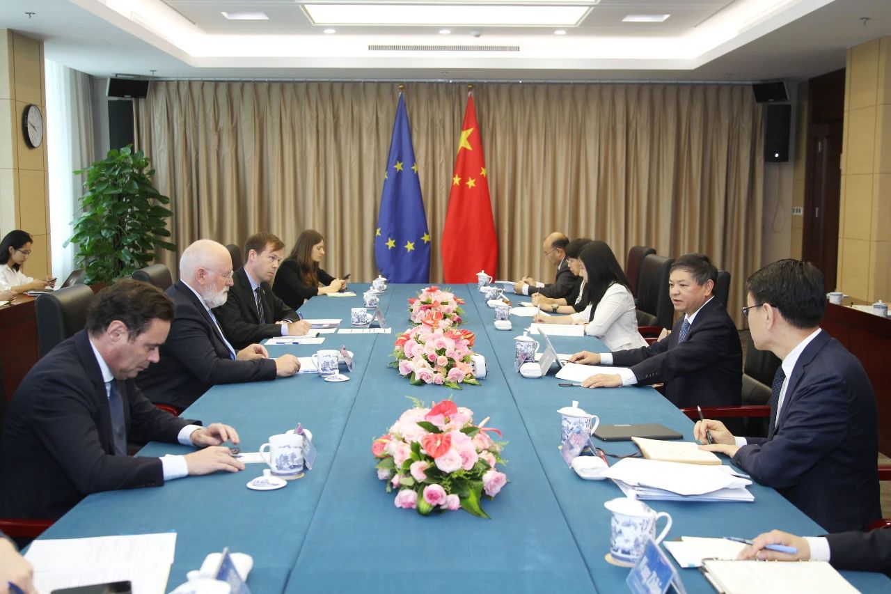 生态环境部部长黄润秋会见欧盟委员会执行副主席蒂默曼斯