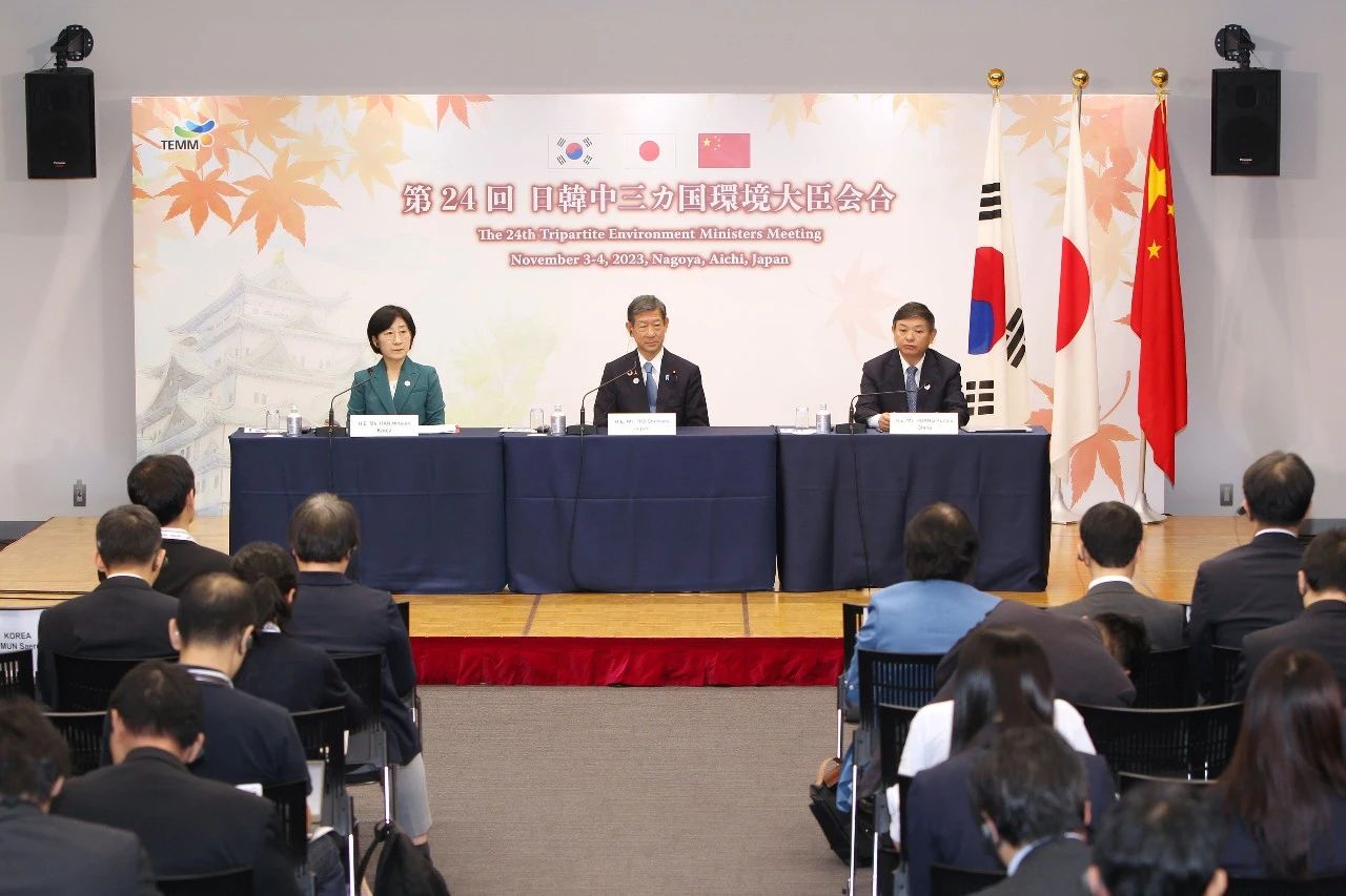 11月3日至4日,第二十四次中日韩环境部长会议在日本名古屋市举行。中国生态环境部部长黄润秋、日本环境大臣伊藤信太郎、韩国环境部部长韩和真分别率团出席会议,交流本国环境政策及最新进展,并就共同关心的区域和全球环境议题交换意见。会议审议了《中日韩环境合作联合行动计划(2021-2025)》实施情况,通过并共同签署《第二十四次中日韩环境部长会议联合公报》。