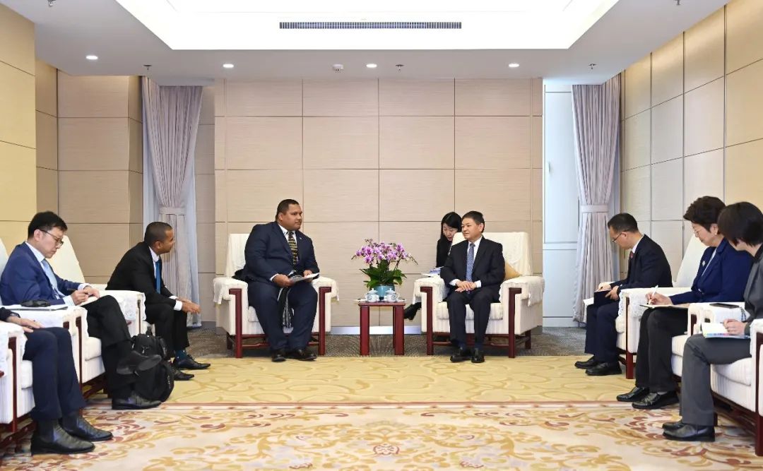 生态环境部部长黄润秋会见瑙鲁基础设施发展、环境治理和农业、体育部长杰里迈亚
