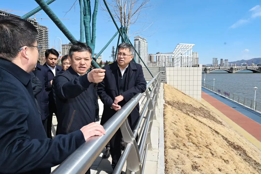 随后,黄润秋一行来到延吉市亲水广场,实地察看美丽河湖保护与建设情况。穿城而过的布尔哈通河两岸风景秀美,河面波光粼粼,吸引大量市民沿河漫步。在听取布尔哈通河(一期)绿水长廊项目等建设情况介绍后,黄润秋详细询问了入河排污口排查整治和污染物主要来源等情况。他指出,要坚持精准、科学、依法治污,持续推进排污口查、测、溯、治,精准识别污染物来源,有针对性地采取整治措施,有效管控各类入河污染物排放,推动河湖生态环境质量持续改善。