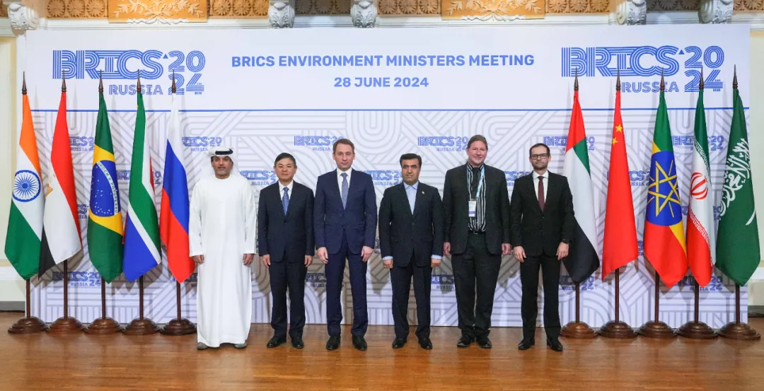 6月28日,第十次金砖国家环境部长会议在俄罗斯下诺夫哥罗德举行。会议以“金砖十国新格局下扩大务实合作的前景”为主题。生态环境部部长黄润秋出席会议、致开幕辞并作主题发言。会议由俄罗斯自然资源和生态部部长亚历山大·科兹洛夫主持。伊朗副总统兼环境部部长阿里·萨拉杰赫、阿联酋气候变化和环境部副部长阿勒·努艾米、下诺夫哥罗德州长线下出席会议,南非、巴西、埃及、埃塞俄比亚、印度环境部长(或部长代表)线上出席会议。