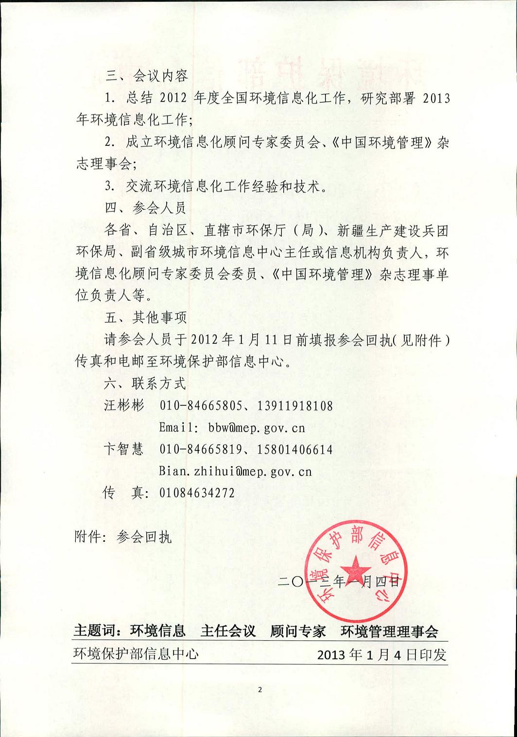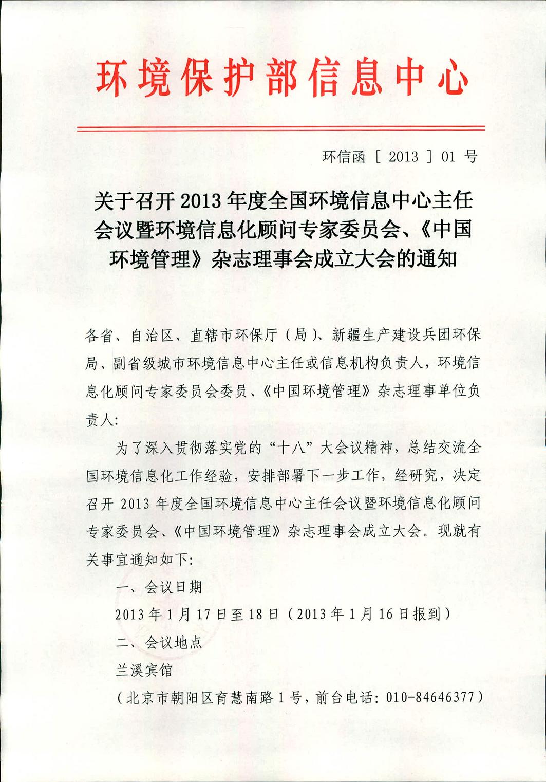 关于召开2013年度全国环境信息中心主任会议暨环境信息化顾问专家委员会、《中国环境管理》杂志理事会成立大会的通知(环信函[2013]-1号)