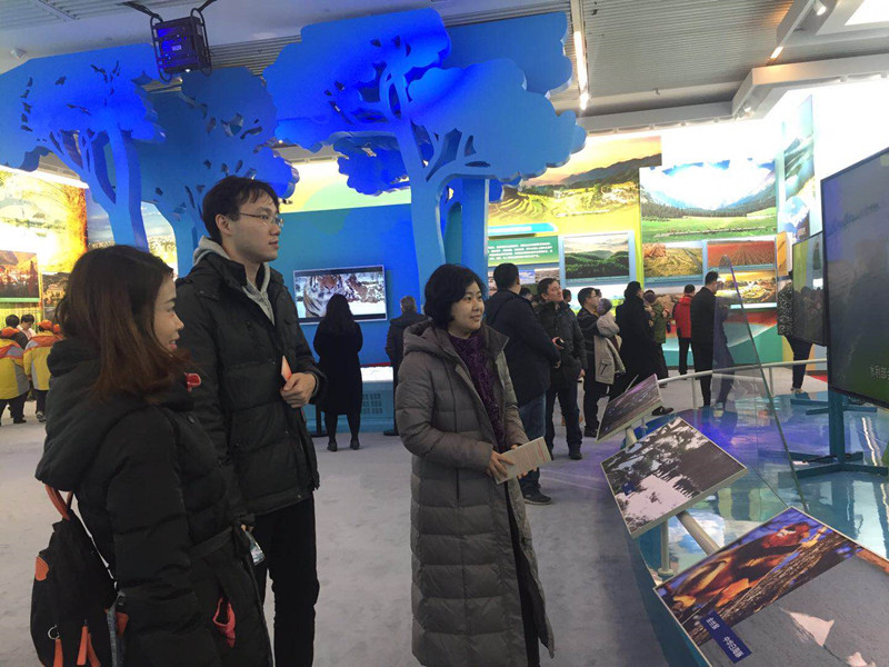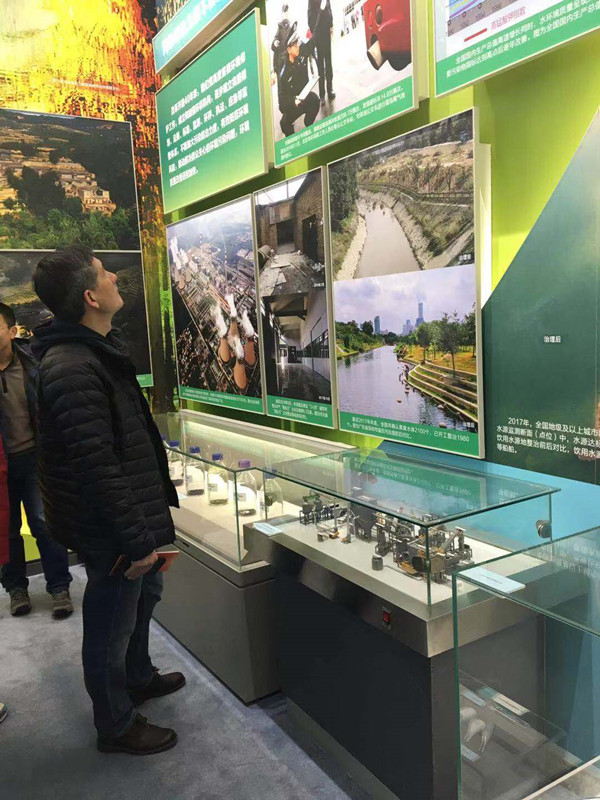 大家先后参观了“伟大的变革”、“壮美诗篇”、“关键抉择”、“历史巨变”、“大国气象”和“面向未来”6个展区,并重点参观了“历史巨变”展区的“人与自然和谐发展,推进美丽中国建设”单元。听着讲解员讲述甘肃省古浪县6位老人及他们的后代坚持造林治沙的故事,看着展板上腾格里沙漠边缘迸发着绿色的生机,感受着党中央治理环境的决心和勇气……面对今非昔比的巨变,大家纷纷感慨,这些碧水蓝天见证了改革开放40年,尤其是党的十八大以来把生态文明建设和绿色发展纳入“五位一体”总体布局和五大发展理念所带来的巨变。