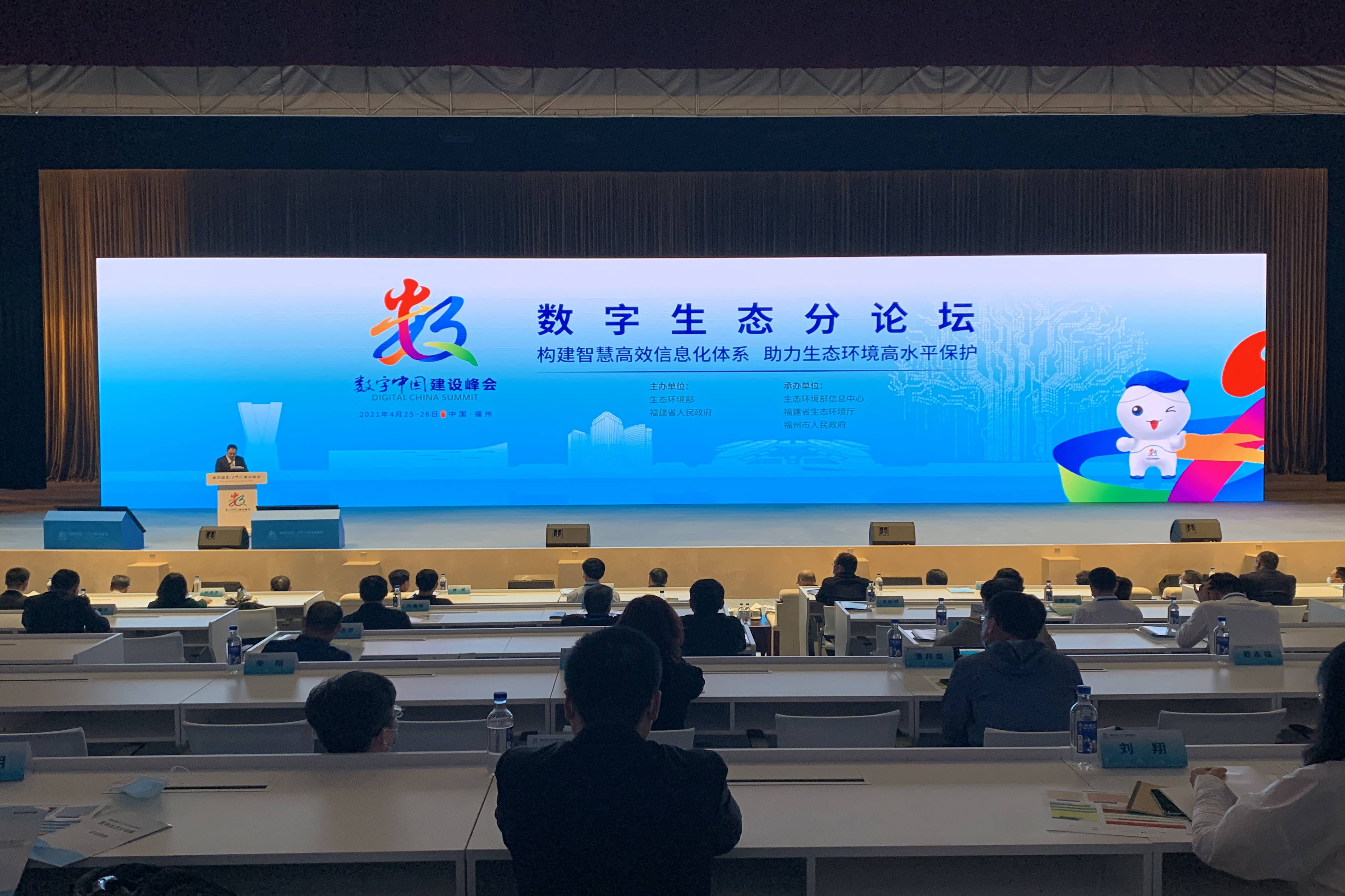 2021年4月25日,由生态环境部和福建省人民政府联合主办,生态环境部信息中心、福建省生态环境厅、福州市人民政府共同承办,以“构建智慧高效信息化体系 助力生态环境高水平保护”为主题的第四届数字中国建设峰会数字生态分论坛在福州市海峡国际会展中心大会堂如期举行。