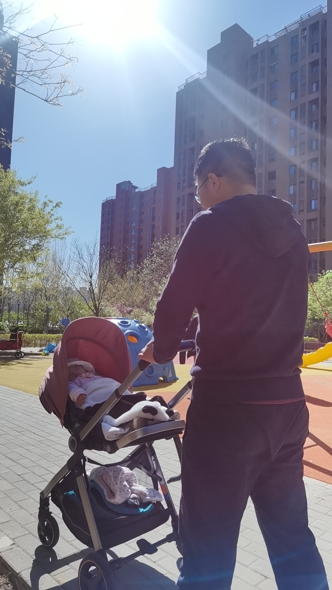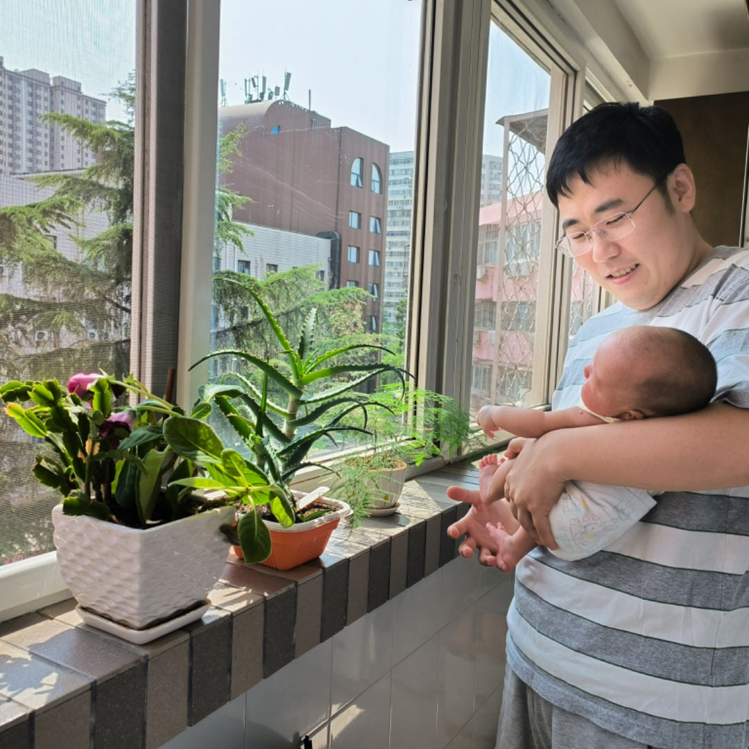 2023年5月14日,岳佳际小朋友出生51天啦!今天是大晴天,岳佳际小朋友和爸爸在阳台晒晒太阳、看看家里种养的绿植也看看屋外的松树,以新生命最懵懂的视角感受大自然。我们亲近大自然,逐渐热爱大自然。